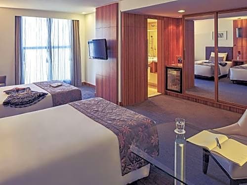 Accommodations span a stylish mix of suites and comfortable rooms. Notable options include the Executive Suite (775 sqft) with a king bed, accommodating up to 8 adults and 5 children; the Deluxe Suite (1776 sqft) with a king bed for 2 adults; the Presidential Suite (1776 sqft) also featuring a king bed and capable of hosting up to 8 adults and 5 children; the Imperial Suite (1777 sqft) for 2 adults and 1 child; and the Junior Suite (538 sqft) with a king bed, suitable for up to 5 adults and 3 children.